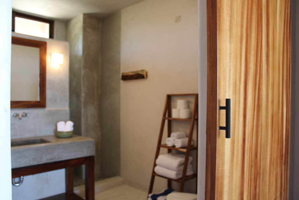 Con acabados en madera, cemento pulido, loseta de barro y estucos creados especialmente para el proyecto, el diseño realza la enigmática belleza del entorno, fusionando el lujo con la atmósfera relajada de la costa.